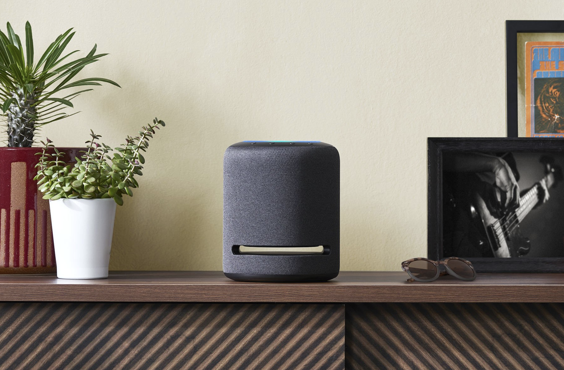 The next-generation Echo features an updated fabric design with options suitable for any style—including Twilight Blue, Charcoal, Heather Grey, and Sandstone. Echo has the same audio architecture as Echo Plus, including a 3-inch woofer and increased back volume so that the bass feels stronger, and the mids and highs are clearer.